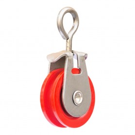 Half-cover design for rope protection. 360° swivel eye for smooth rope movement. Single sheave for efficient hauling. Durable construction for various use cases. Compact and lightweight for easy carrying. Ideal for hauling, lifting, and rope management.